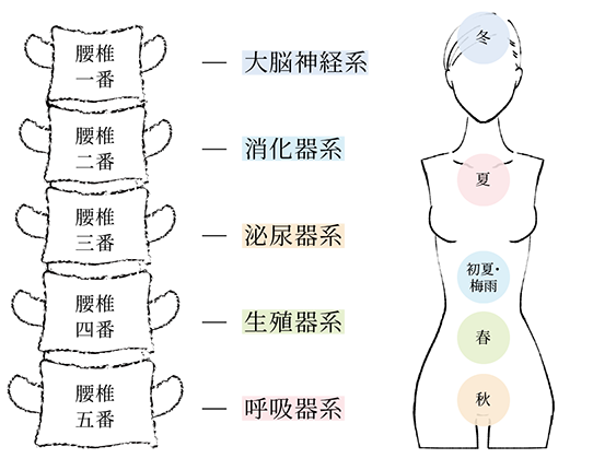 腰椎とそれに対応するからだは、実は季節の移り変わりとも深く関係しています。